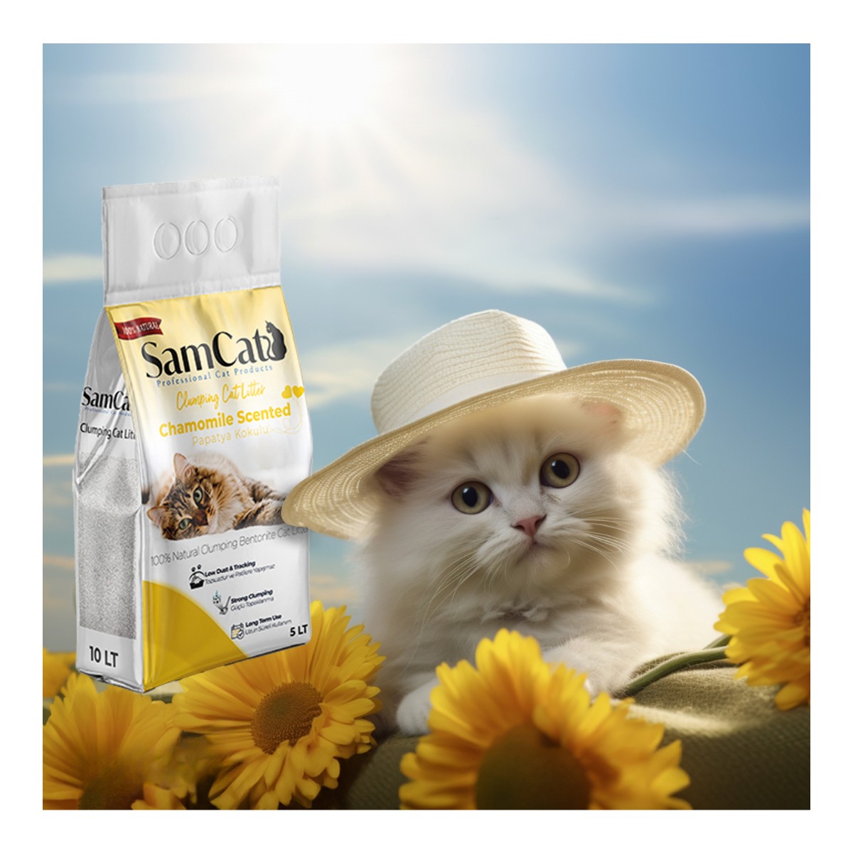 Kum kabını zemini kaplayacak şekilde 7-8 cm kalınlığında SamCat Papatya Kokulu Kedi Kumunu dökünüz ve her gün topaklanan parçacıkları temizleyiniz. Doğal ve huzur verici kokusuyla SamCat Papatya Kokulu Kedi Kumu, hem kediniz hem de sizin için mükemmel bir tercih olacaktır.
