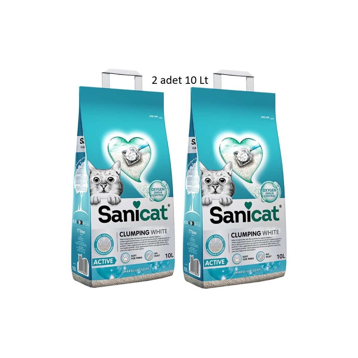 Sanicat Active Topaklaşan Marsilya Sabunu Kokulu İnce Kedi Kumu 2 x 10 Lt SaniCat Aktif Oksijenli Dezanfektan Doğal Kedi Kumu 2 x 10 Lt