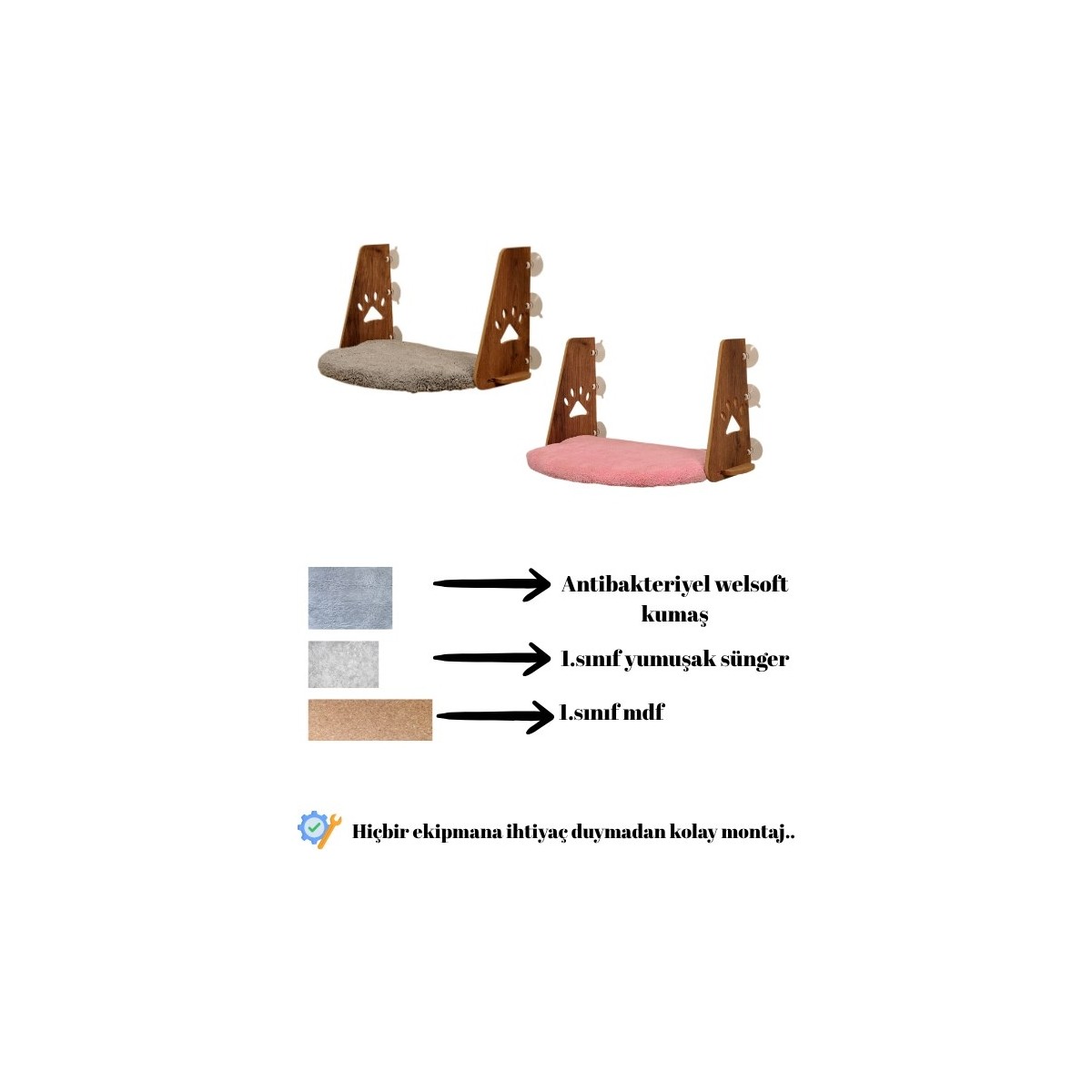 •  Cam Yatağı, kedilerin cam önünde rahatça yatabilmesi için tasarlanmıştır.
