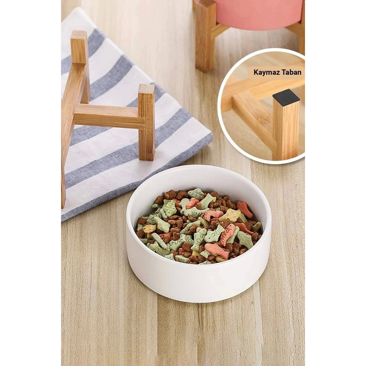 Seramik Mama ve Su Kabı, Kaymaz Taban, 500ML, Beyaz, 2’li Set