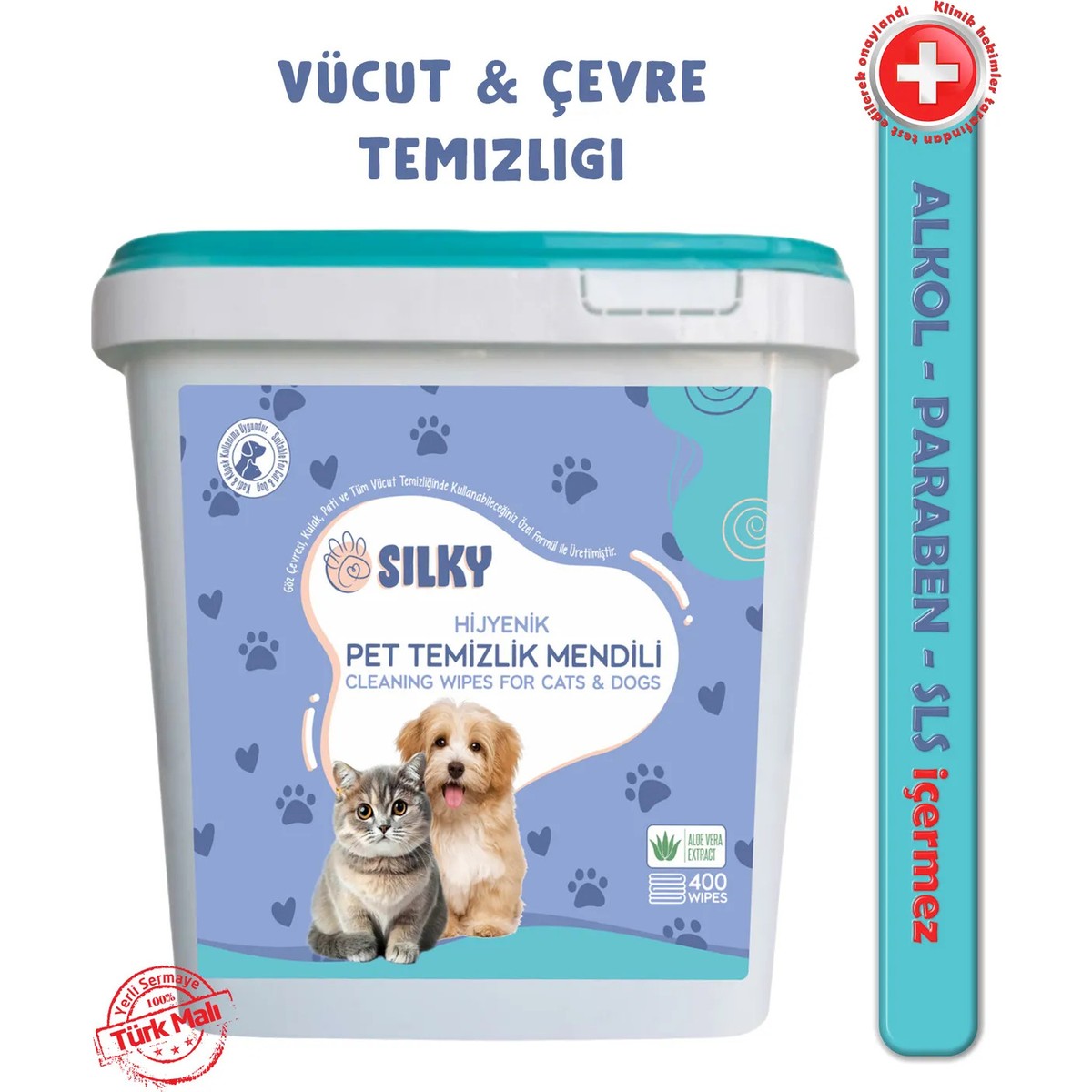 Silky – Evcil Hayvan Tüy / Pati Temizleme Islak Mendili – Doğal Esans İçerik / 400 Adet