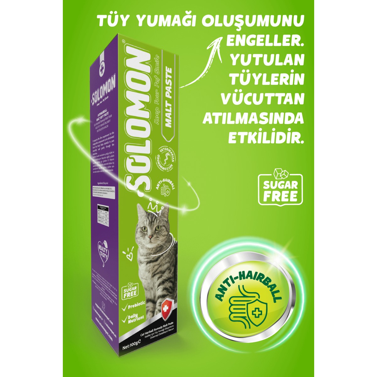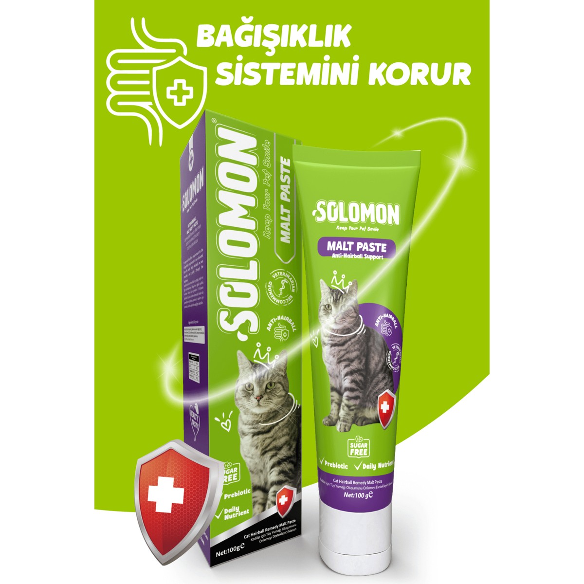 Solomon Malt Paste 100 Gr Kedi Tüy Yumağı Önlemeyi Destekleyen Malt Macunu