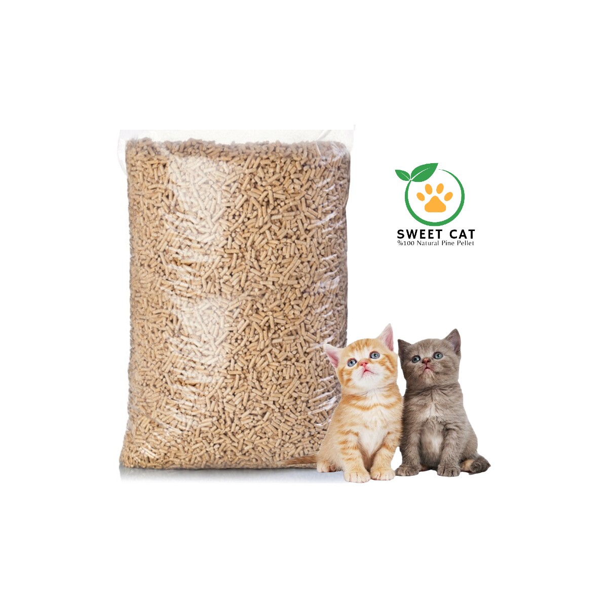 Sweet Cat Pellet Çam Peleti Kedi Kumu % 100 doğaldır ve Selüloz peletlerine göre yüksek emiciliğe ve hızlı absorvasyona sahiptir. Bu ürün dışkıyı kurutur ve bakteri oluşumunu engeller. Sweet cat Hijyenik ve sağlıklıdır. Herhangi bir toksit veya kimyasal içermez %100 çam talaşından imal edilmiştir %100 güvenilirdir. Ağaç kokulu kedi kumu doğal ve temizdir. Ayrıca kokuyu içine hapseder. Kötü kokuyu nötralize eder. doğal ağaç kokusu yayar. Kolay atılabilir kolay ve kullanılışlıdır. Kediniz tuvaletini rahatlıkla yapabilir. Tuvalete atılabilir. tıkama yapmaz. Yüksek absorpsiyon (emilim) 10 kg pelet, 50 litre suyu emer. Sizi her gün temizlik yapmaktan kurtarır. <u>Topaklanma yapmaz.</u>Toz içermez %99 tozsuzdur üretim aşamasında kullanılan granül yardımı ile talaş tozu en az seviyeye indirilmiştir. Bu sayede solunum sistemi üzerinde en az etkiye sahiptir. 6 mm çapında 1cm ile 2cm boyutlarındadır.
