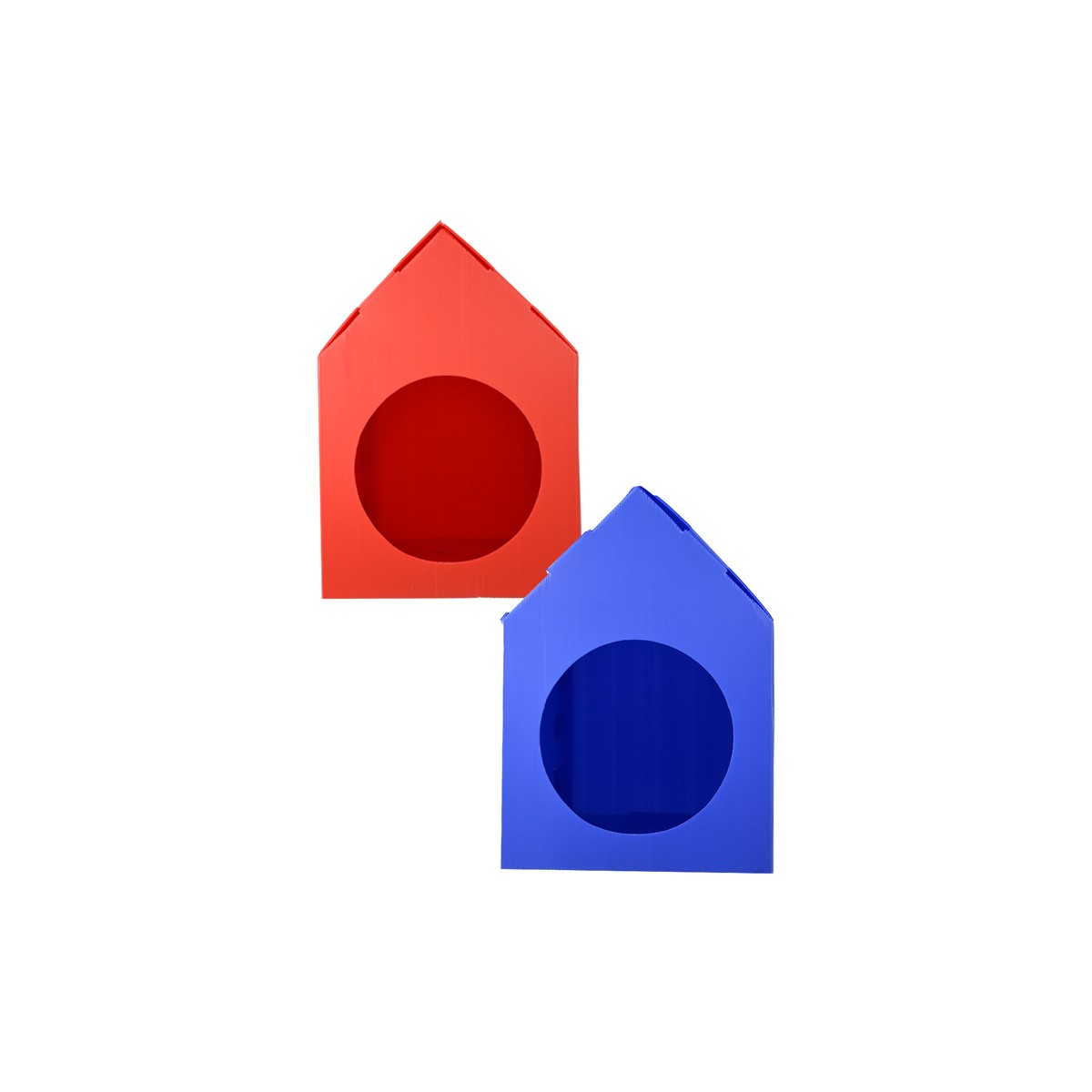 Temel Özel Üretim Plastik Kedi Evi 2li Set Mavi ve Kırmızı