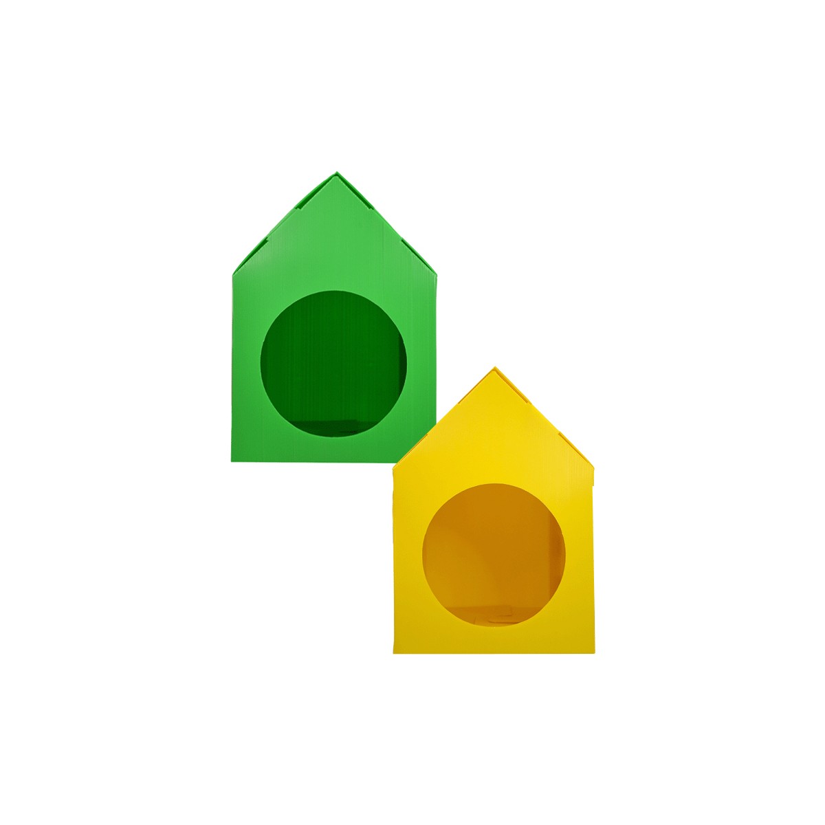 Temel Özel Üretim Plastik Kedi Evi 2li Set Sarı ve Yeşil