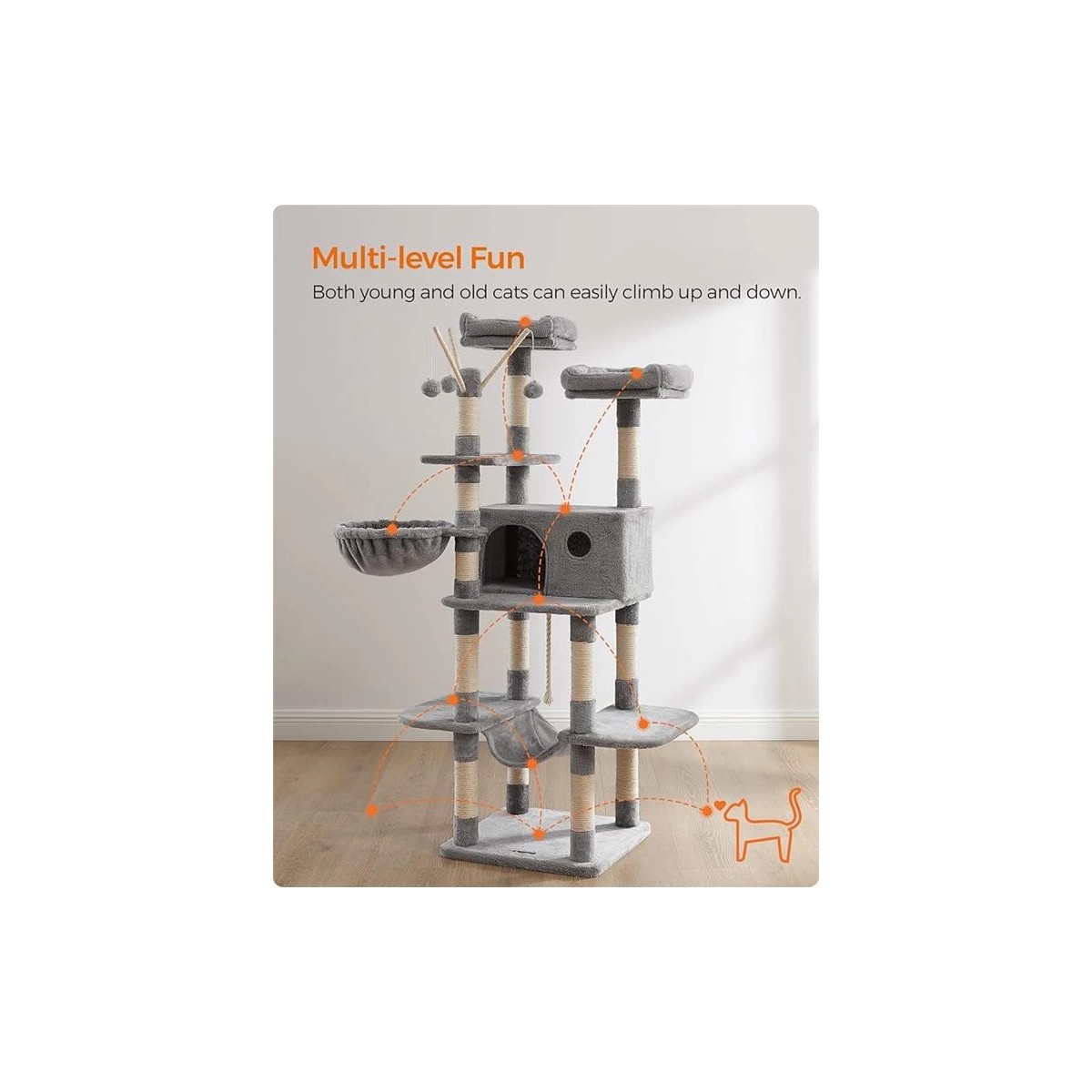 Tırmalama Ağacı, Xxl Kedi Ağacı, 164 Cm, Açık Gri PCT087W01