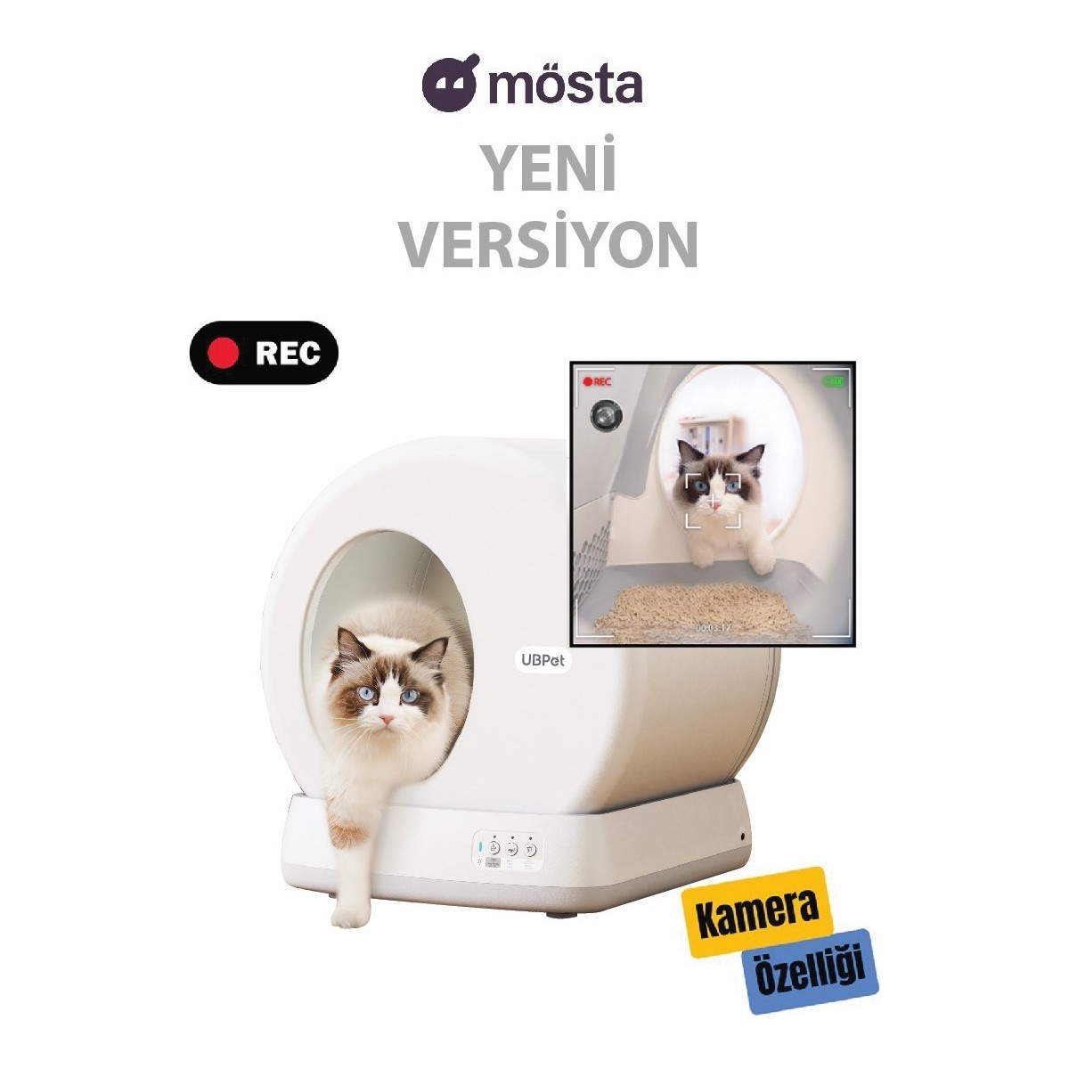 UBPet C10 Pro Kameralı Akıllı Kedi Tuvaleti | Entegre HD Kameralı, Otomatik Temizleme, Mobil Uygulama Kontrolü, Akıllı Sensörler, Sessiz Çalışma, Geniş İç Hacim | 3’lü Koku Seti