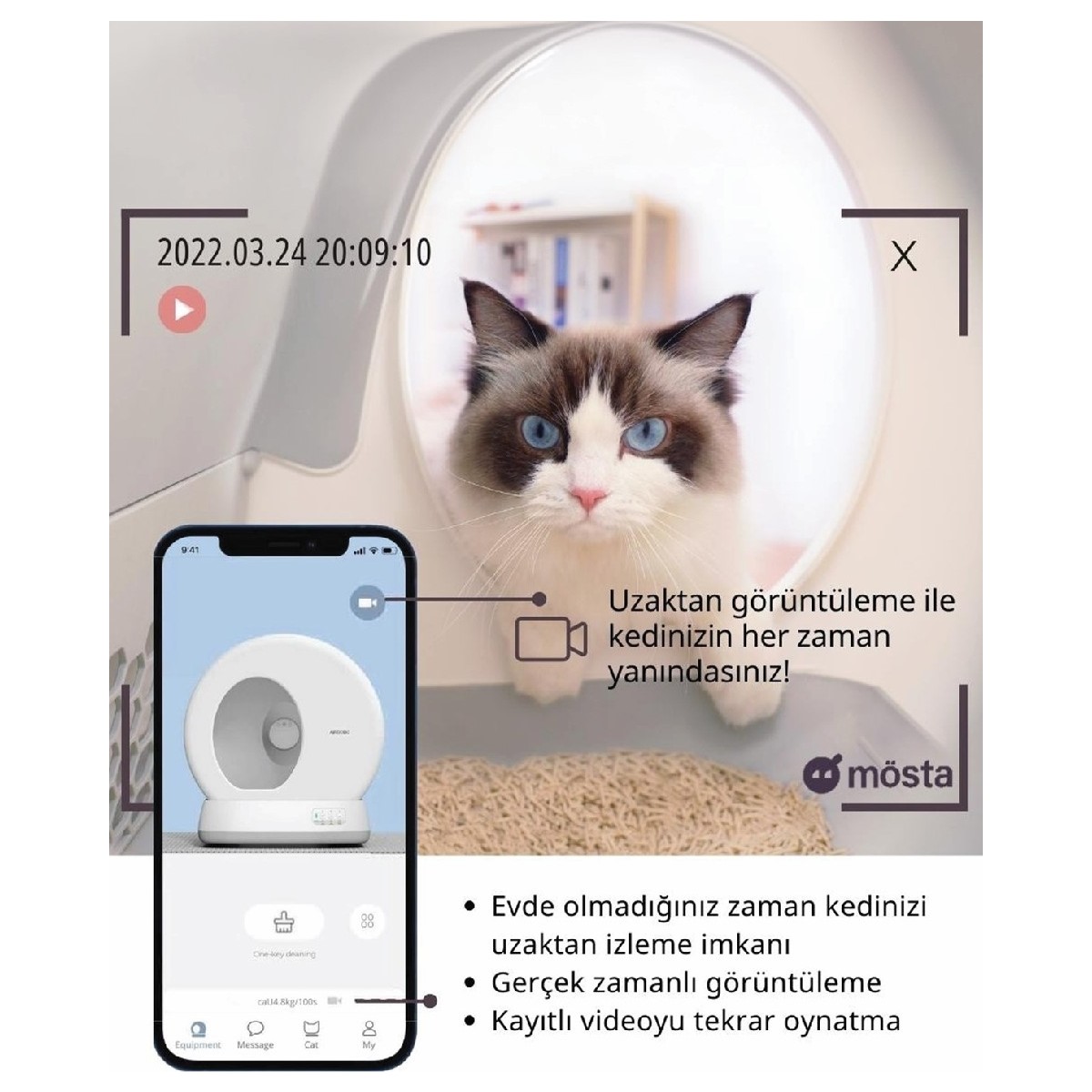 - Türkçe Mobil uygulamaya entegre uzaktan görüntüleme sistemi ile kedinizi uzaktan takip edebilir, evde olmadığınız zamanlarda kedinizin tuvalet alışkanlığını takip edebilirsiniz.