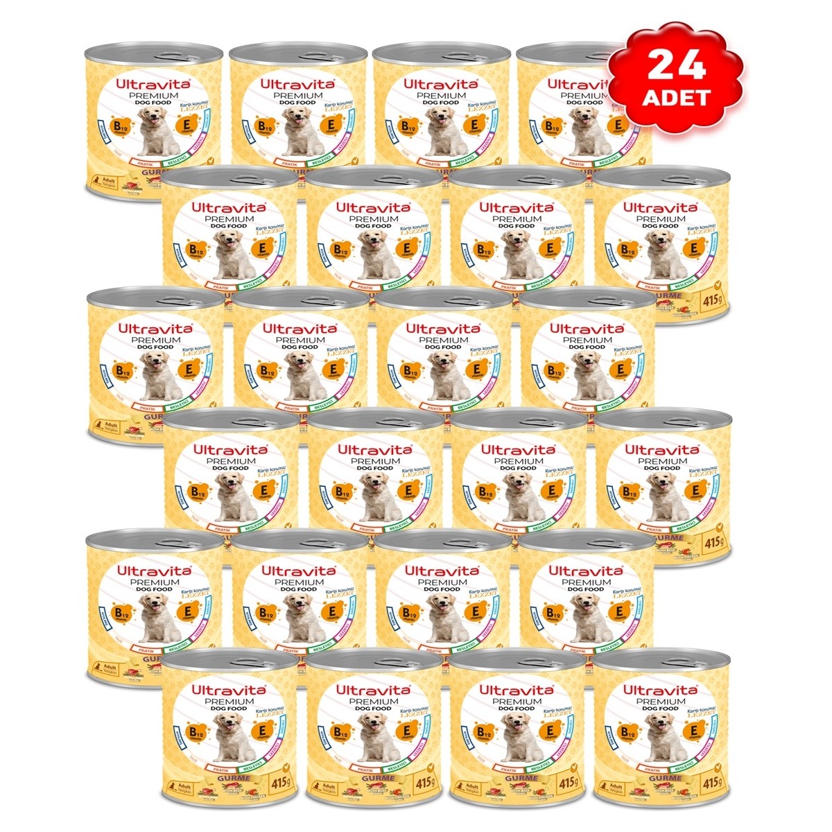 Ultravita Premium Yüksek Proteinli Gurme Etli Konserve Yaş Köpek Maması 415GRX24 Adet