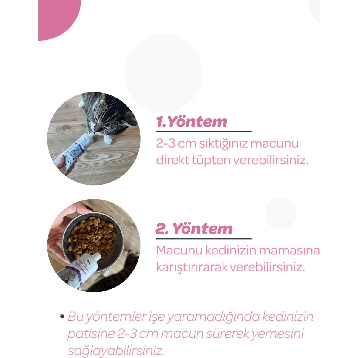 Ürünü 17 gündür kullanıyorum Kedim ilk iki gün yemedi ilk gün bacaklarına sürdüm o şekilde yemesini sağladım ikinci gün mamasına karıştırdım 3. Gün yedi şimdi bıraksam tüpü yiyecek o kadar çok seviyor daha