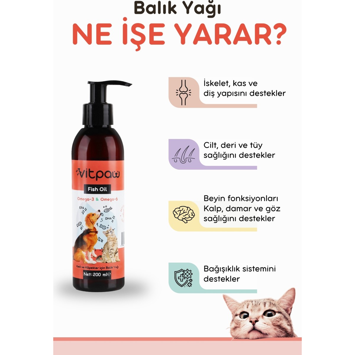 vitpaw Fish Oil 200ml. Kedi Ve Köpekler Için Omega 3-omega 6 Balık Yağı(KALP, BEYİN, TÜY SAĞLIĞI)somon Yağı, Kedi Balık Yağı, Kedi vitamini, Köpek Vitamini