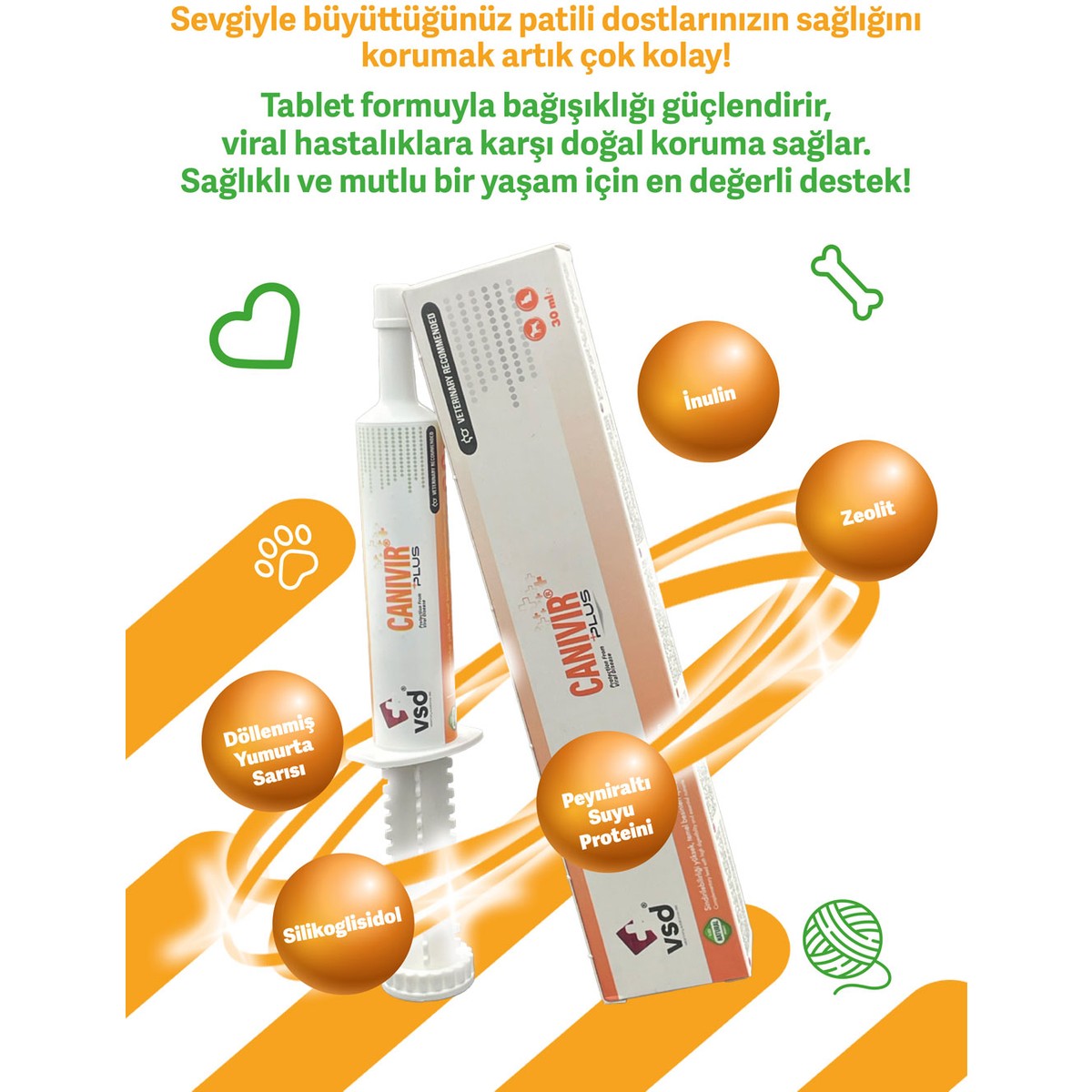 CANIVIR PLUS – Viral Enfeksiyonlara Karşı Güçlü Destek Evcil dostlarınızın savunmalarını güçlendirmek ve viral enfeksiyonlara karşı korumak için ideal çözüm.