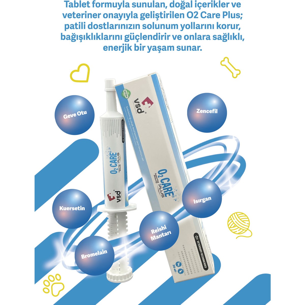 O2 CARE PLUS Kullanım Şekli ve Dozu Ürünün pasta formu her 5kg canlı ağırlık için 1ml, tablet formu ise her 10kg canlı ağırlık için 1 tablet şeklinde kullanılır.