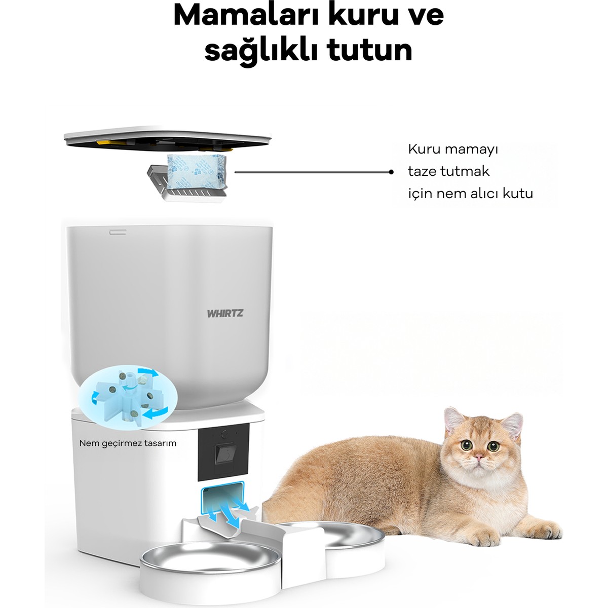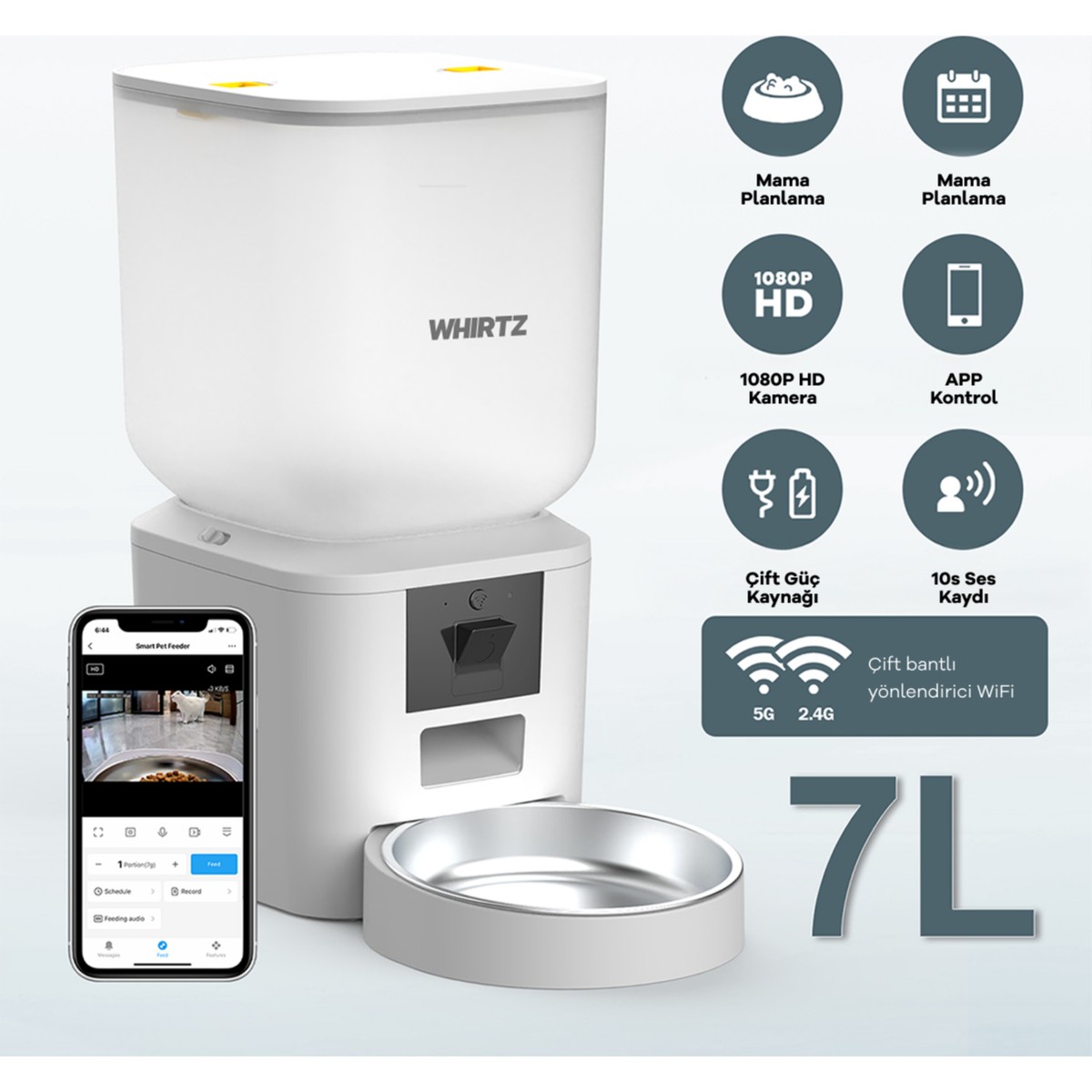Evcil dostunuzun konforunu ve beslenme düzenini Whirtz ile yükseltin! 7 litre büyük hacmi, kamera ve ses kontrolü özellikleriyle bu mama kabı; hem sizin için hem de sevimli arkadaşınız için tam bir konfor ve güvenlik sunar.