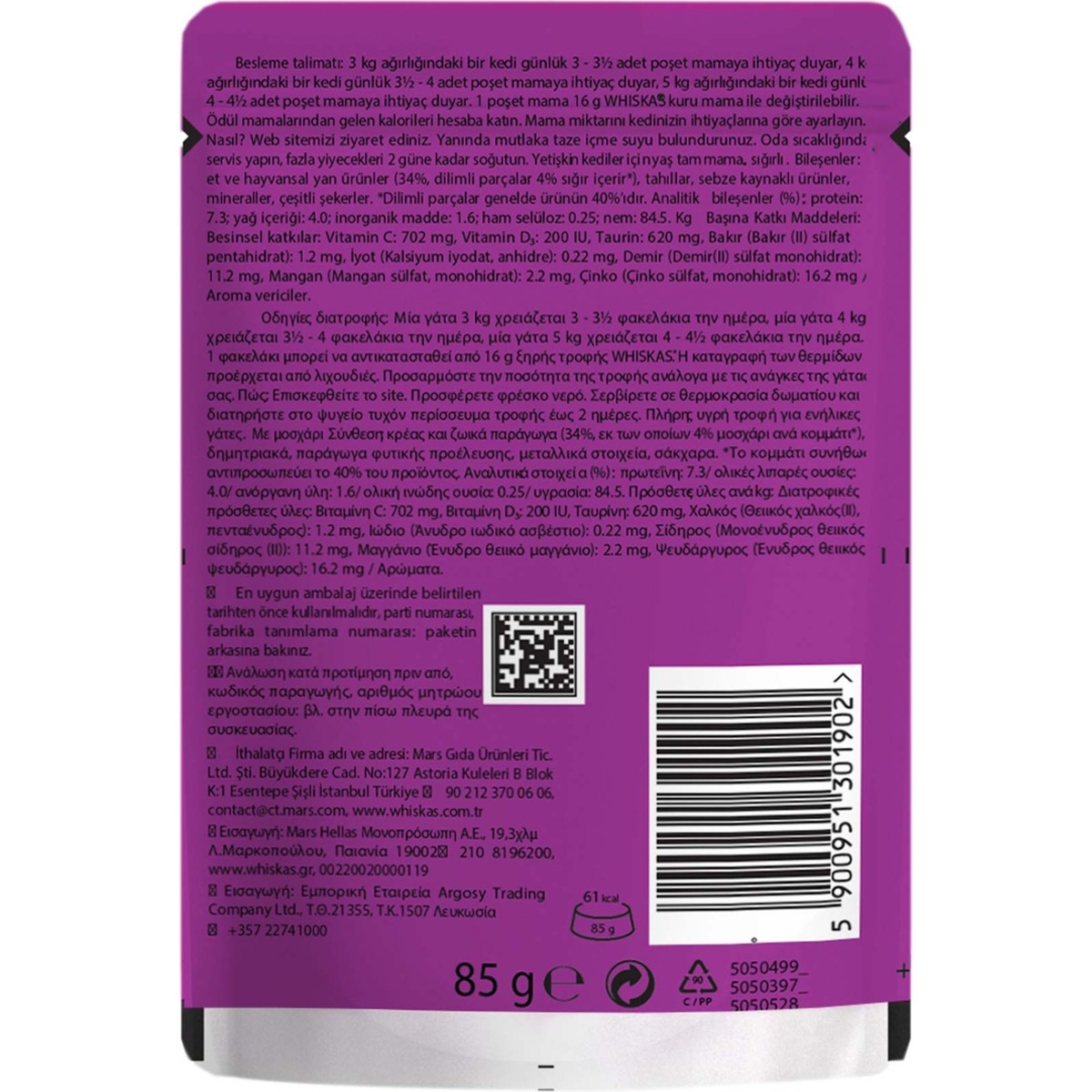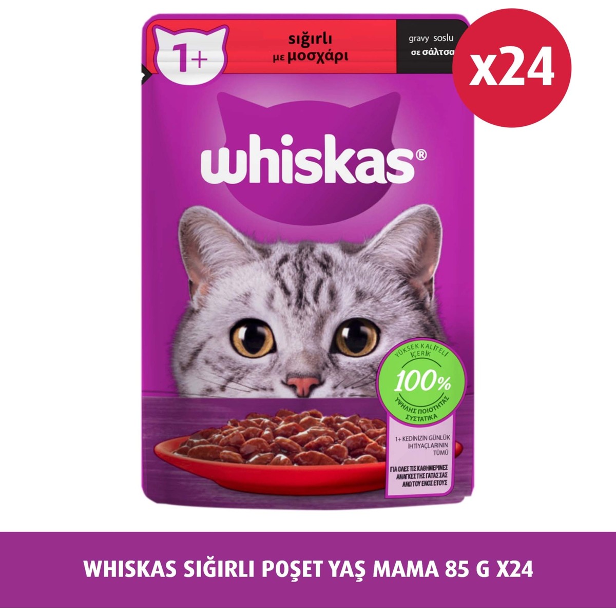 Whiskas Sığırlı Kedi Maması 85 gr 24 Adet Yüksek Kaliteli Polonya Menşeli Besin İçeriği