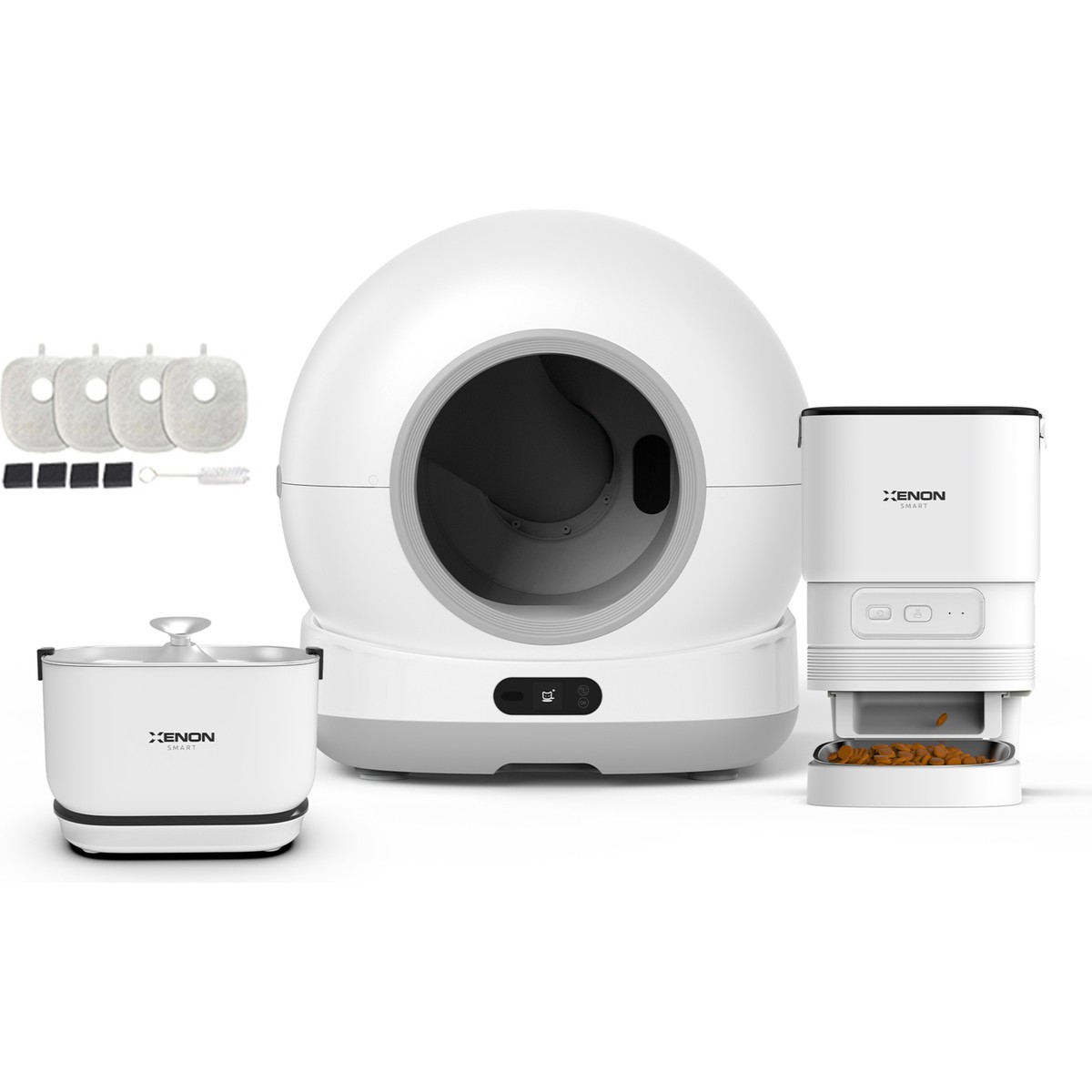 Xenon Smart Akıllı Otomatik Kameralı Kedi Tuvaleti Mobil Uygulama ile Uzaktan Kontrol Edilebilen (Wi-Fi) UV Sterilizasyon Özelliği Olan 72L Hacimli 7L Kapasiteli Kedi Kum Kabı, Koku Tableti ve Çıkarılabilir Kum Paspası Hediyeli Cat Cleaner, Akıllı Otomatik Kedi Köpek Mama Kabı Mobil Uygulama Kontrollü Paslanmaz Çelik Kaseli Evcil Hayvan Besleyici, Otomatik Şarj Edilebilir Bataryalı Kedi Su Sebili Pet Su Çeşmesi Kablosuz Su Şelalesi Ultra Sessiz Çelik Su Pınarı ve Yedek Filtre 4’lü Evcil Hayvan Pet Seti