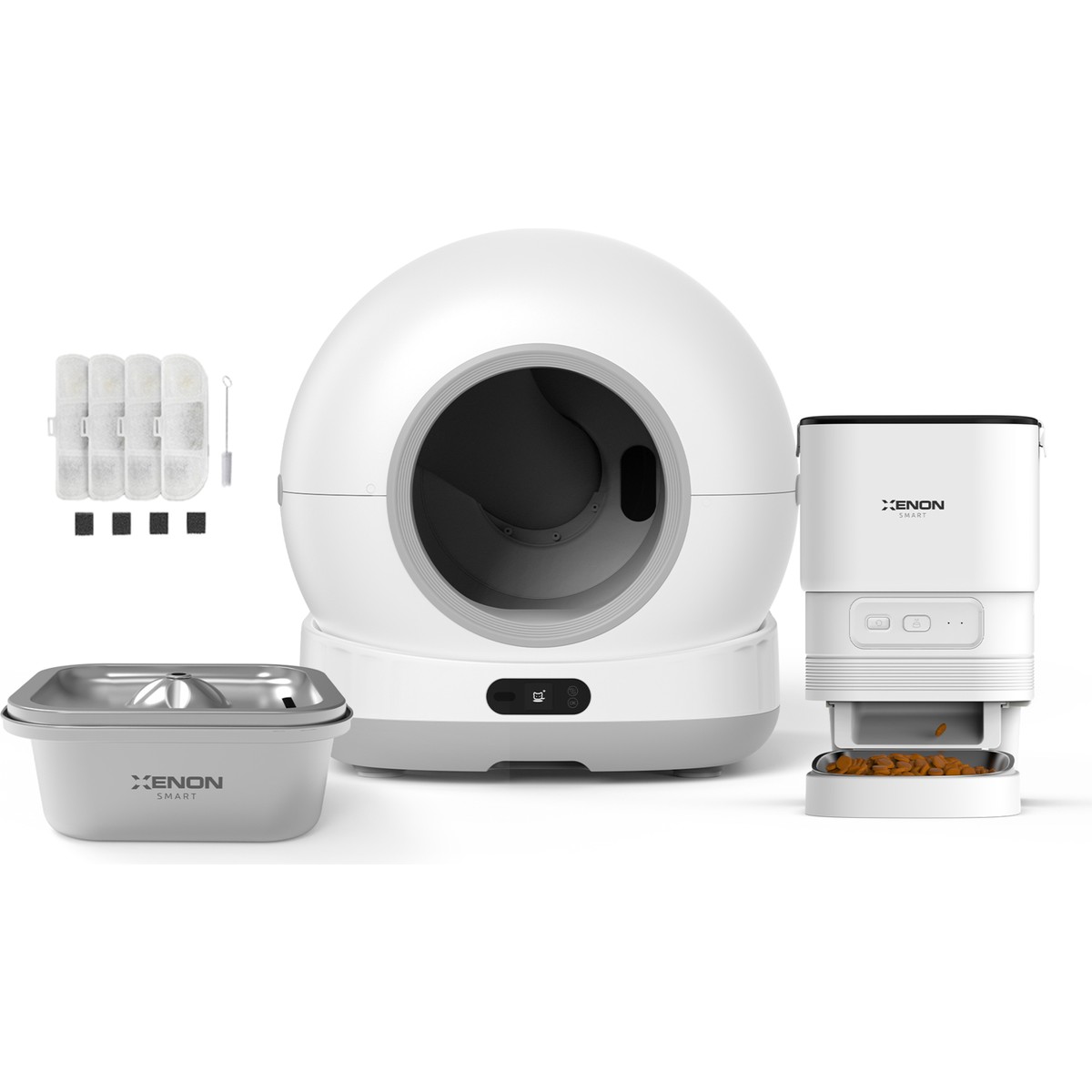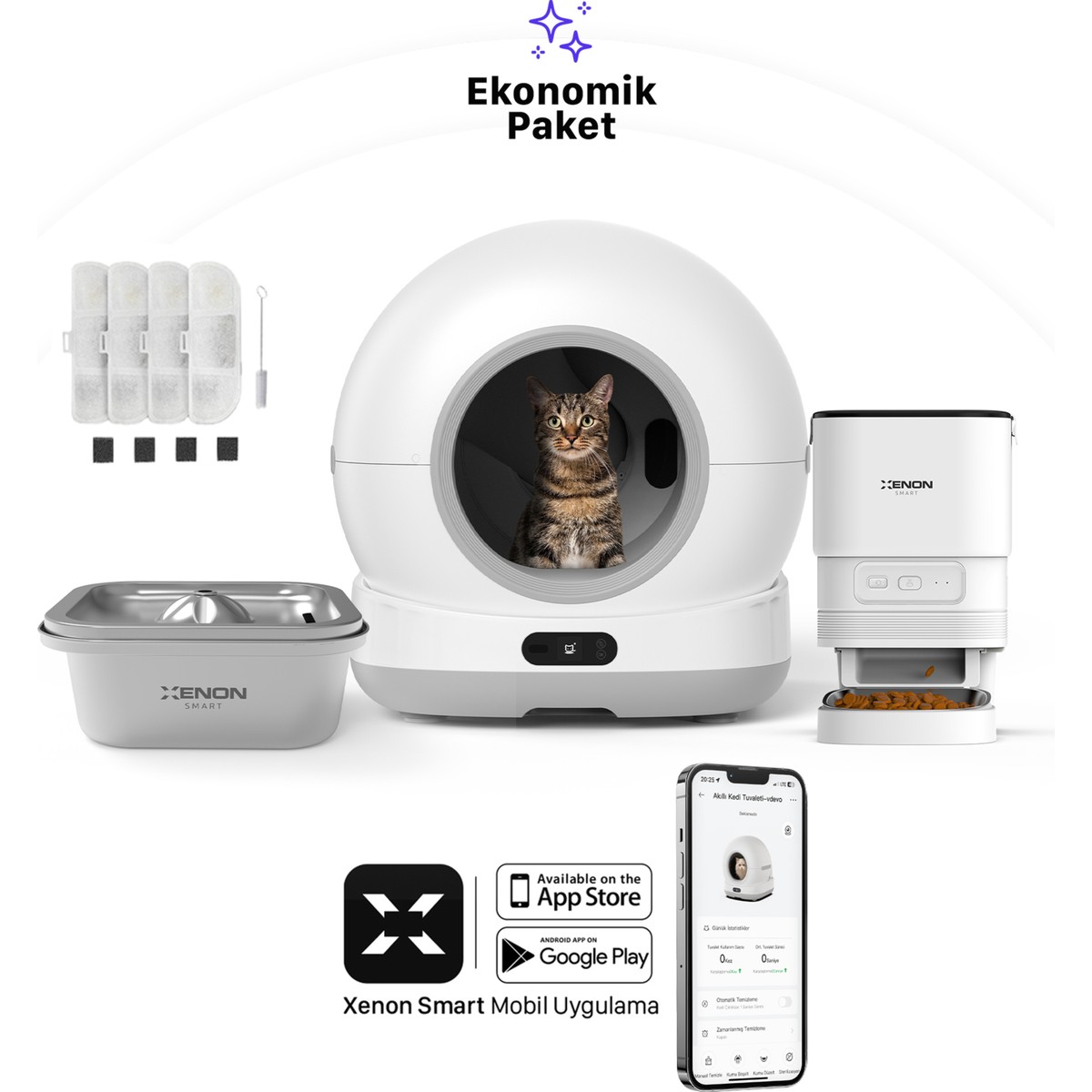 Xenon Smart Akıllı Otomatik Kedi Tuvaleti Paslanmaz Çelik Kaseli Mama Kabı Çelik Hazneli Su Pınarı ve Filtre 4’lü Pet Seti