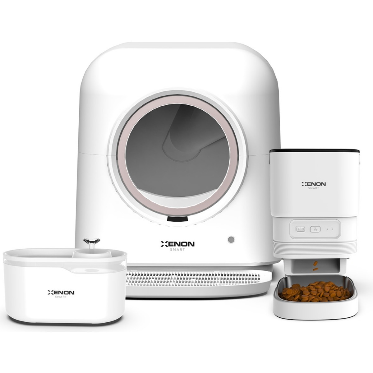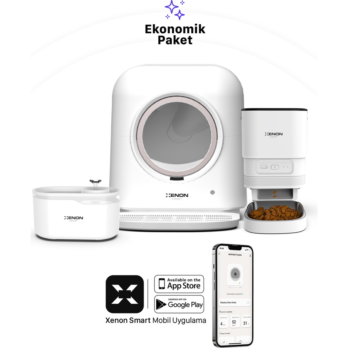 Xenon Smart Akıllı Otomatik Kedi Tuvaleti Paslanmaz Çelik Kaseli Mama Kabı Ultra Sessiz LED Işıklı Su Pınarı 3’lü Pet Seti