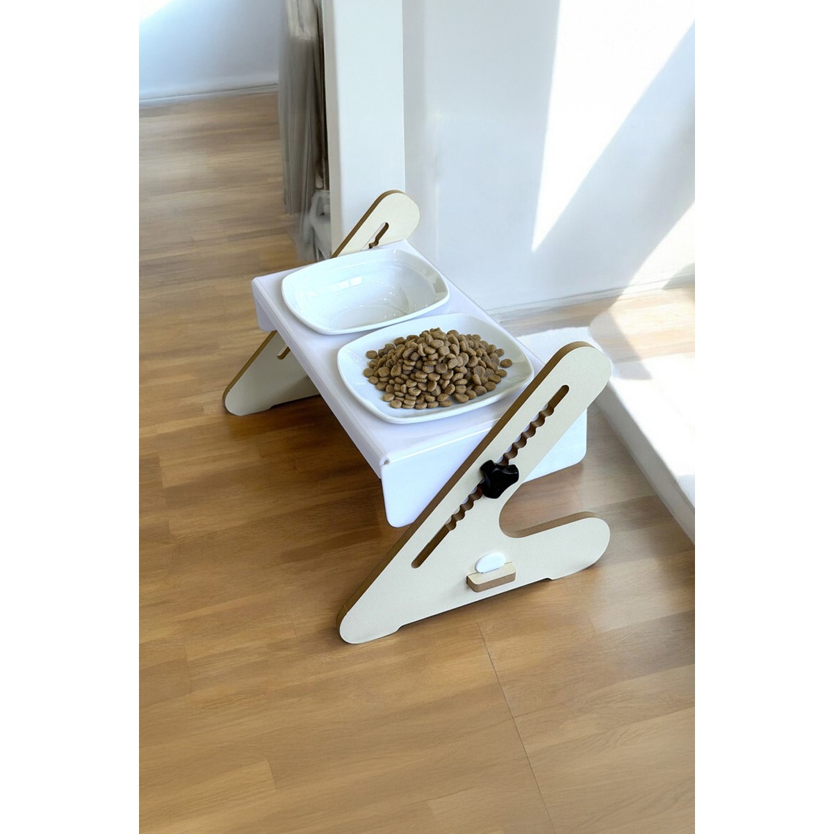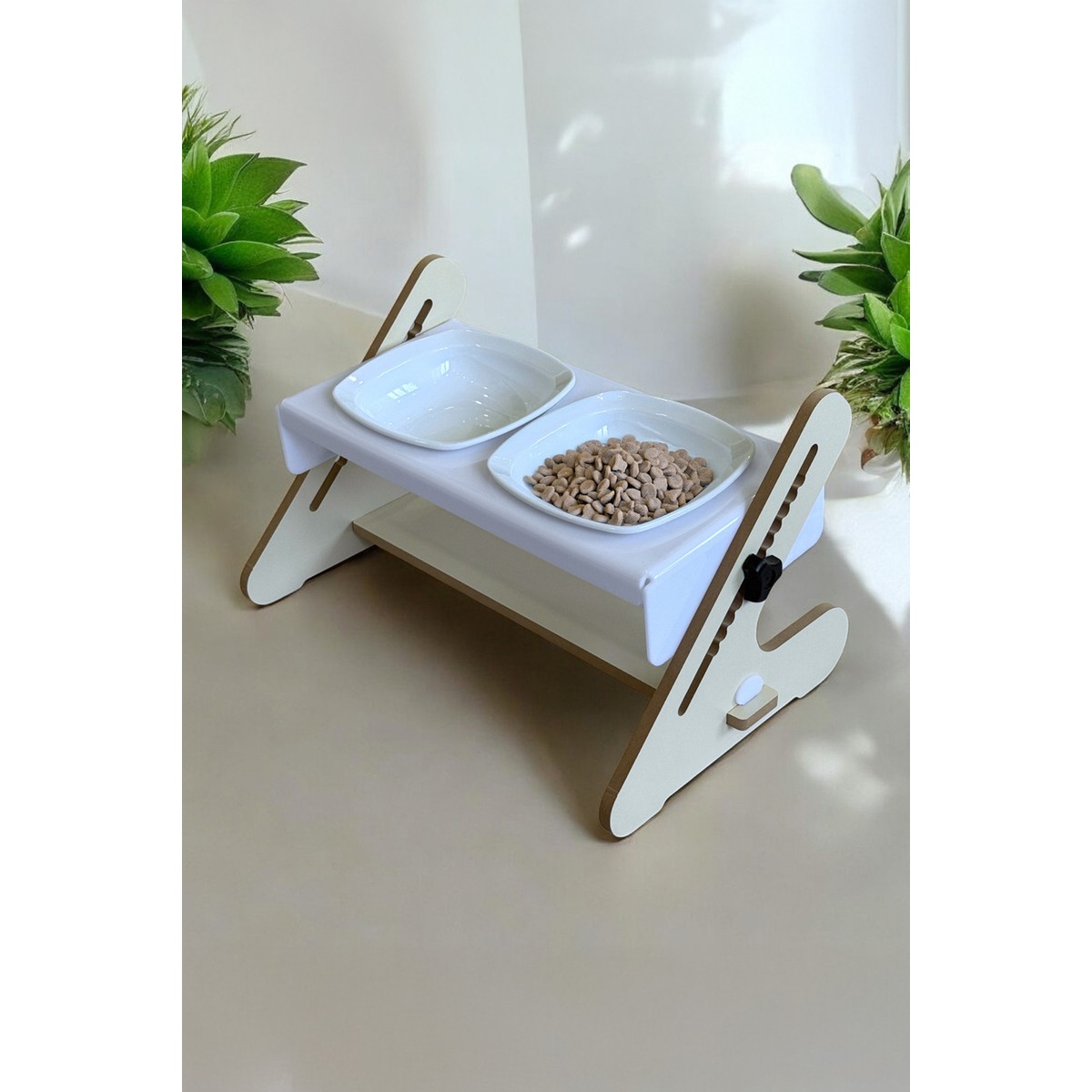 Yükseklik Ayarlı, Bej, Manuel, Şık ve Fonksiyonel Kedi Su ve Mama Kabı