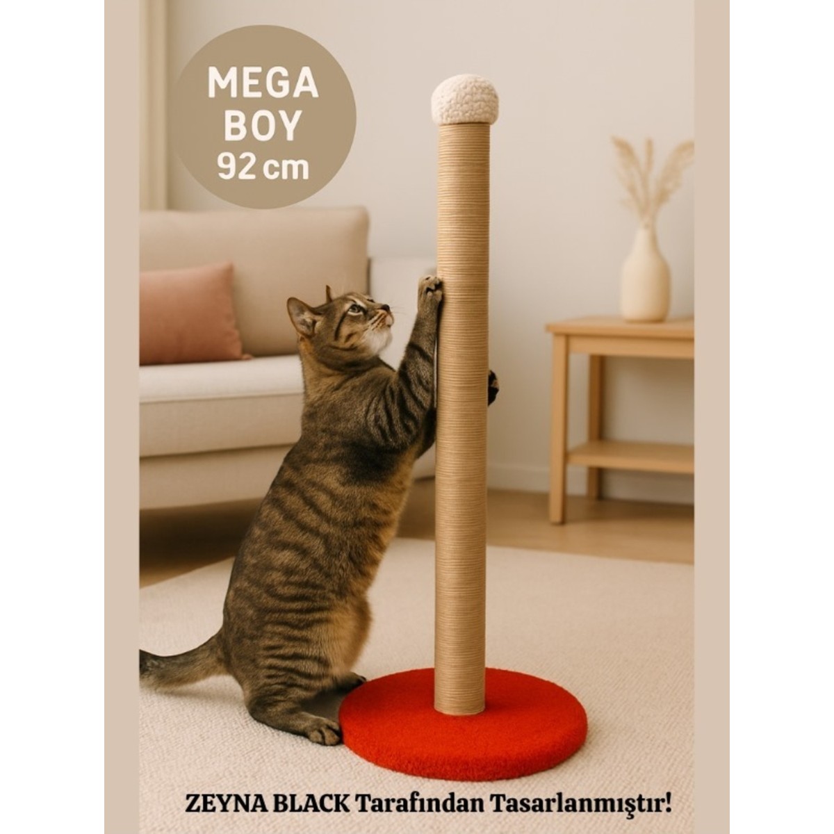 – 92 cm yuvarlak tabanlı tasarım, stabil ve kullanışlı – Turuncu renk, canlı ve enerjik görünüm sağlar – Yumuşak ve konforlu yüzey, kedinizin rahatlığına uygun – Jüt halat, dayanıklı ve uzun ömürlü kullanım sunar